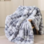 Faux Fur Throw Blanket for Couch, Cozy Soft and Fuzzy Plush Tie Dye Blue Warm Blanket